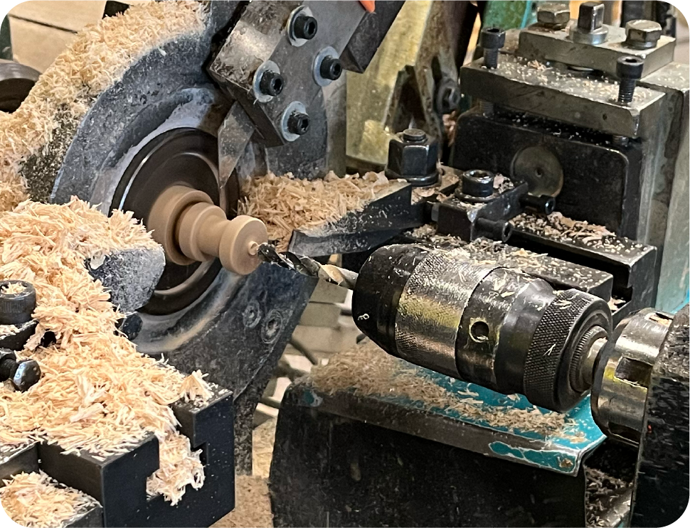 Chaque objet est façonné avec précision dans notre atelier. Notre maîtrise du tournage sur bois, héritée de plus de 40 ans d’expérience, nous permet de réaliser des petites séries que des volumes plus importants dans des délais optimisés. Une réactivité et une adaptabilité qui nous caractérise.